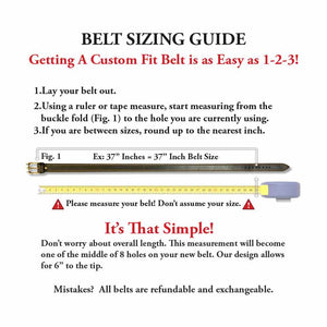 To ensure a perfect fit, grab a Ruler or Tape Measure and one of the belts you currently own and follow our easy sizing guide instructions.